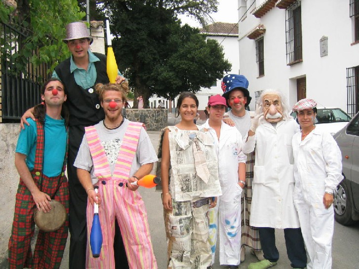 A las 4,30 tuvimos el Pasacalles a cargo del "Grupo Itinerante", compuesto de payasos, con gorros, sombreros y mascaras, que colmaron la delicia de los niños con sus juegos.