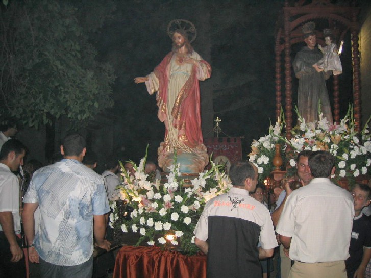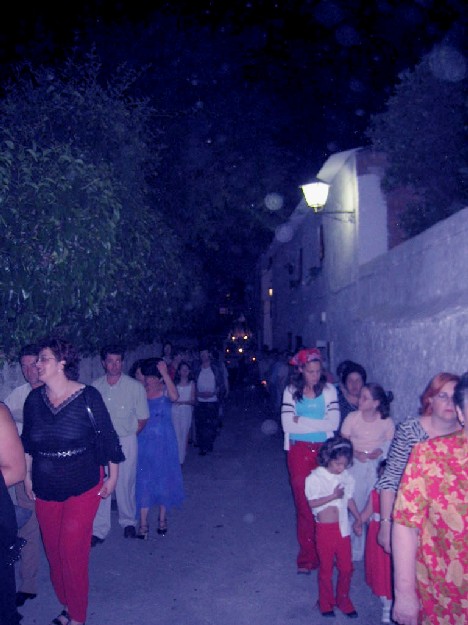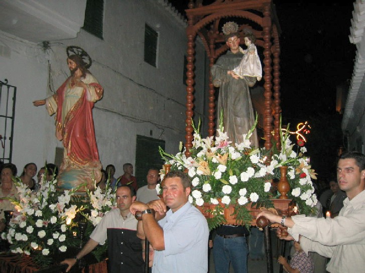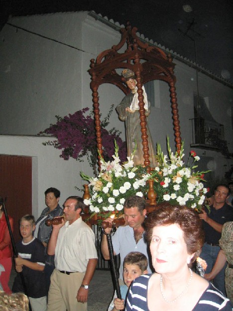 Por la tarde en este gran día de fiesta nuestro patrón se paseó por la principales calles de este pueblo, llevando en su brazos al niño Dios, y este año como primicia el santo paró en la puerta de Francisca Garrido Rodríguez, "La Paca". El santo le hizo una visita y le comunicó que Dios estaba con ella y con su familia.