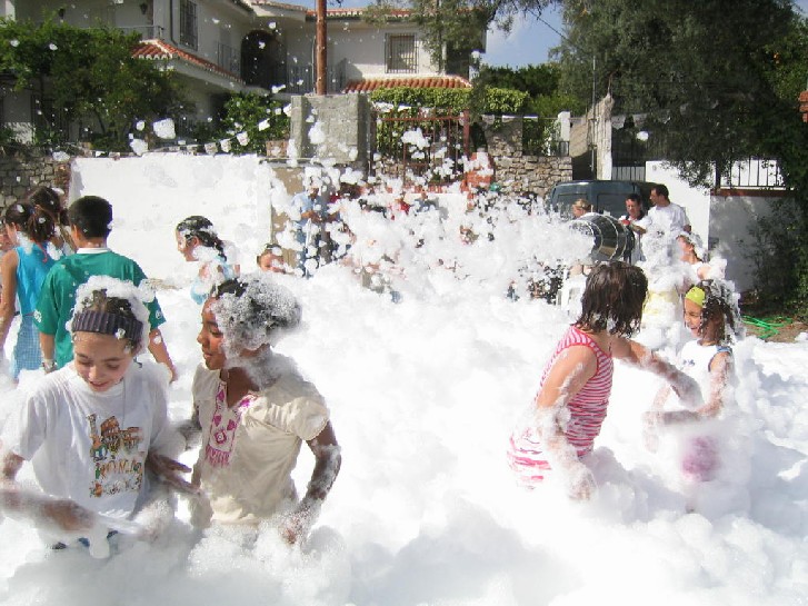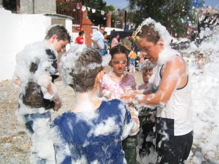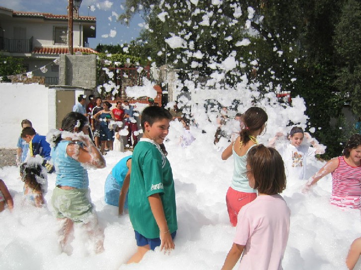 La Fiesta de la Espuma en el Poliderpotivo, fue delicia de niños y mayores debido al gran calor que hacía y que sirvió para refrescarse todos un poco.