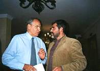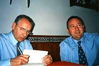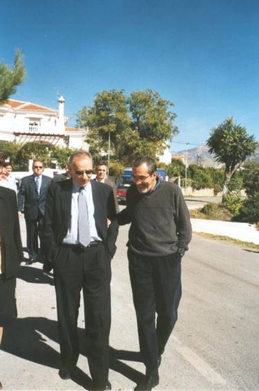 Francisco Sáez hablando con Alfonso Guerra en El Lavadero de La Fuente de Melegís.
