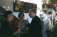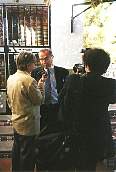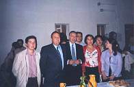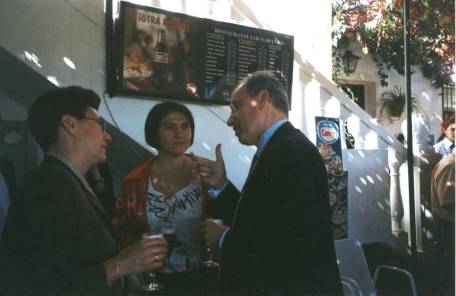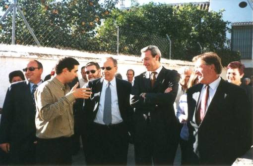 Ian Gibson, Alfonso Guerra y José Antonio Palomino. Alfonso Guerra con Mercedes y Puri, concejalas del Ayuntamiento.