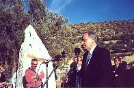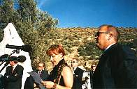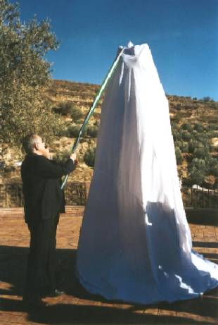 Placa conmemorativa situada al pie del olivo de Los Hijones. Momento de la inauguración de La Dama de El Valle.