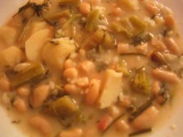 habichuelas con la “pringa” (el hueso de jamón, la costilla, el